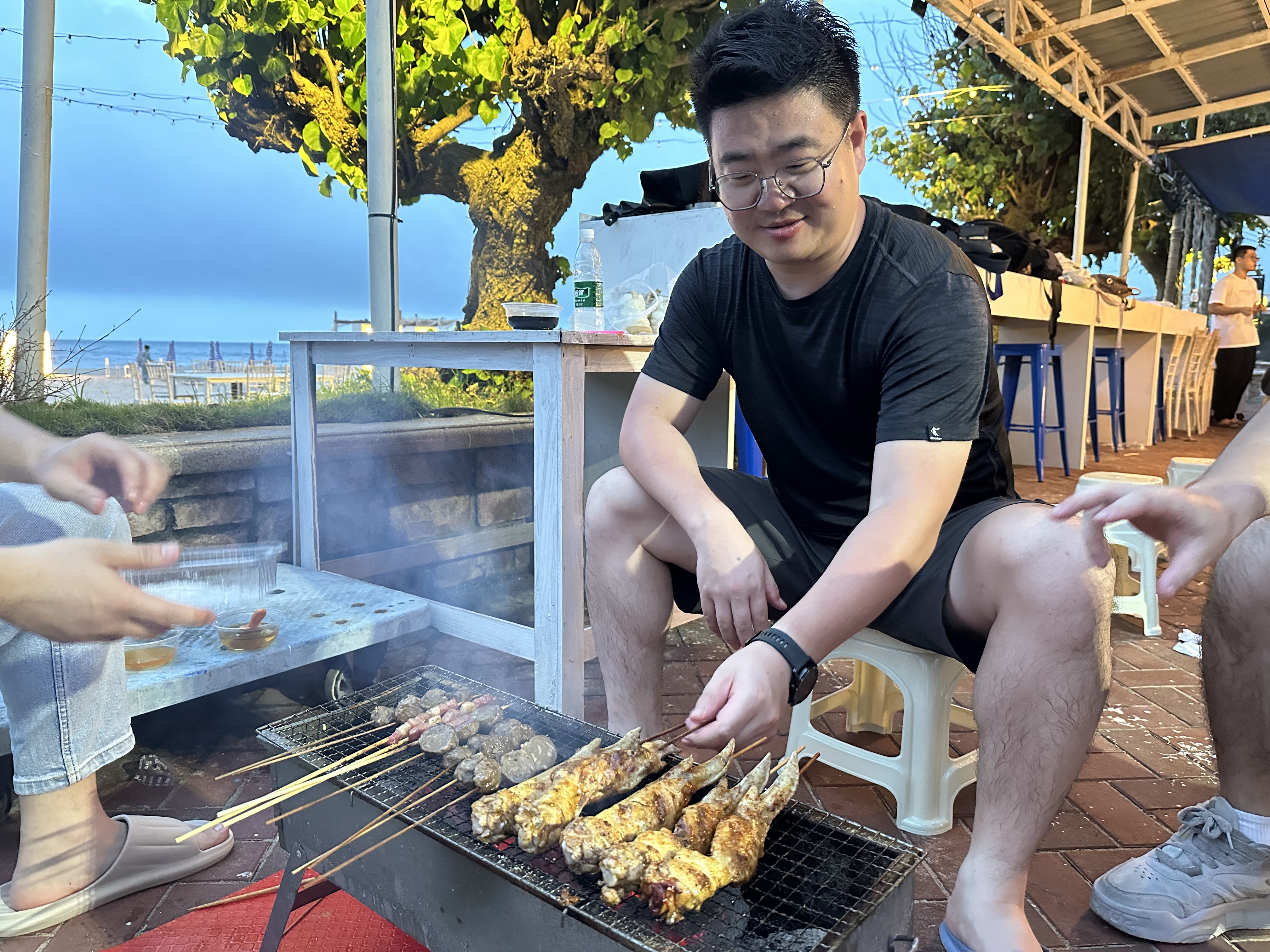 (毕业生侯鑫成为沙滩BBQ的主力军)