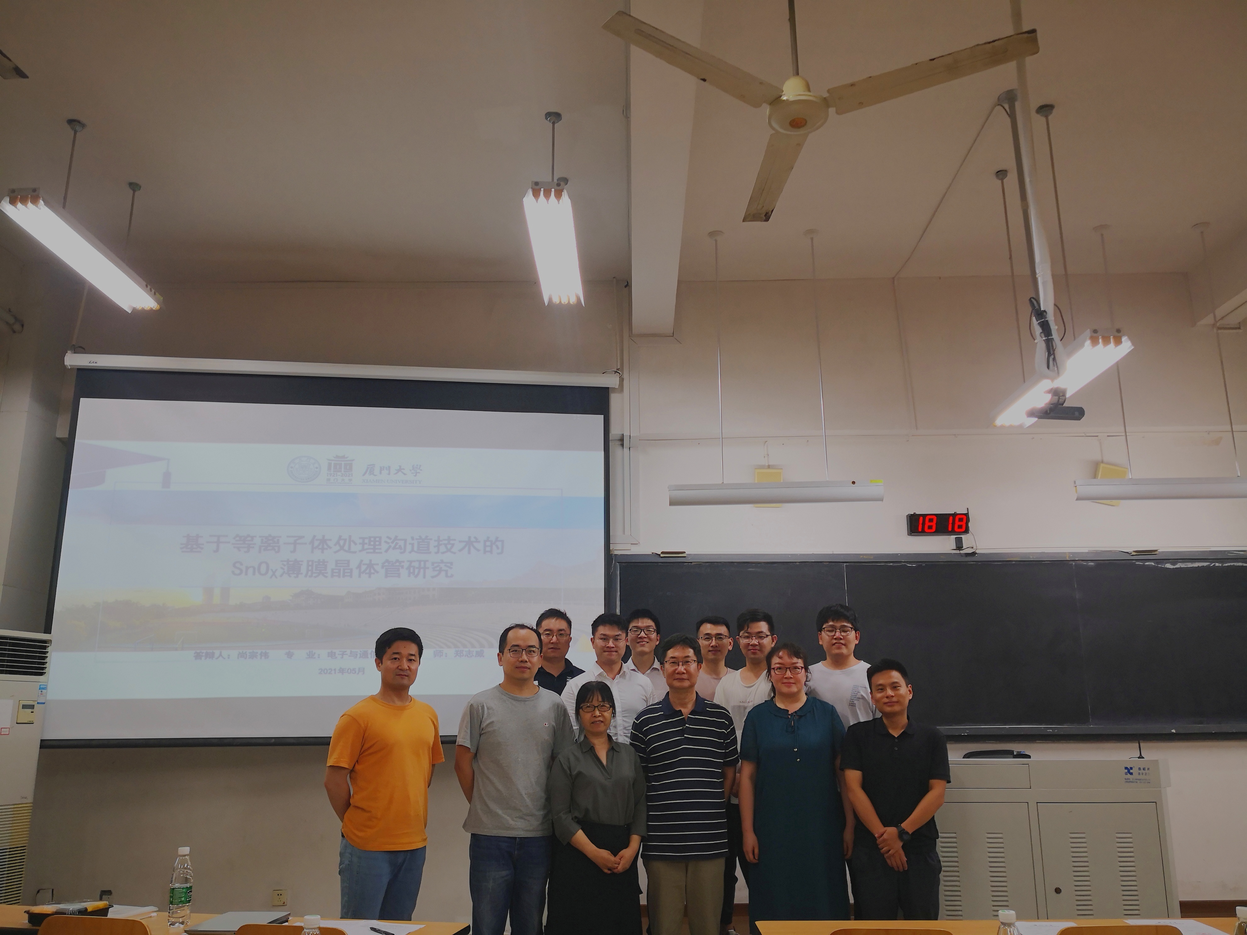 实验室成员刘伟东(左)完成了题为“基于氧化铝铪的铁电电容和铁电场效应晶体管研究”的硕士学位论文答辩,尚宗伟(右)完成了题为“基于等离子体处理沟道技术的 SnOX薄膜晶体管研究”的硕士学位论文答辩。