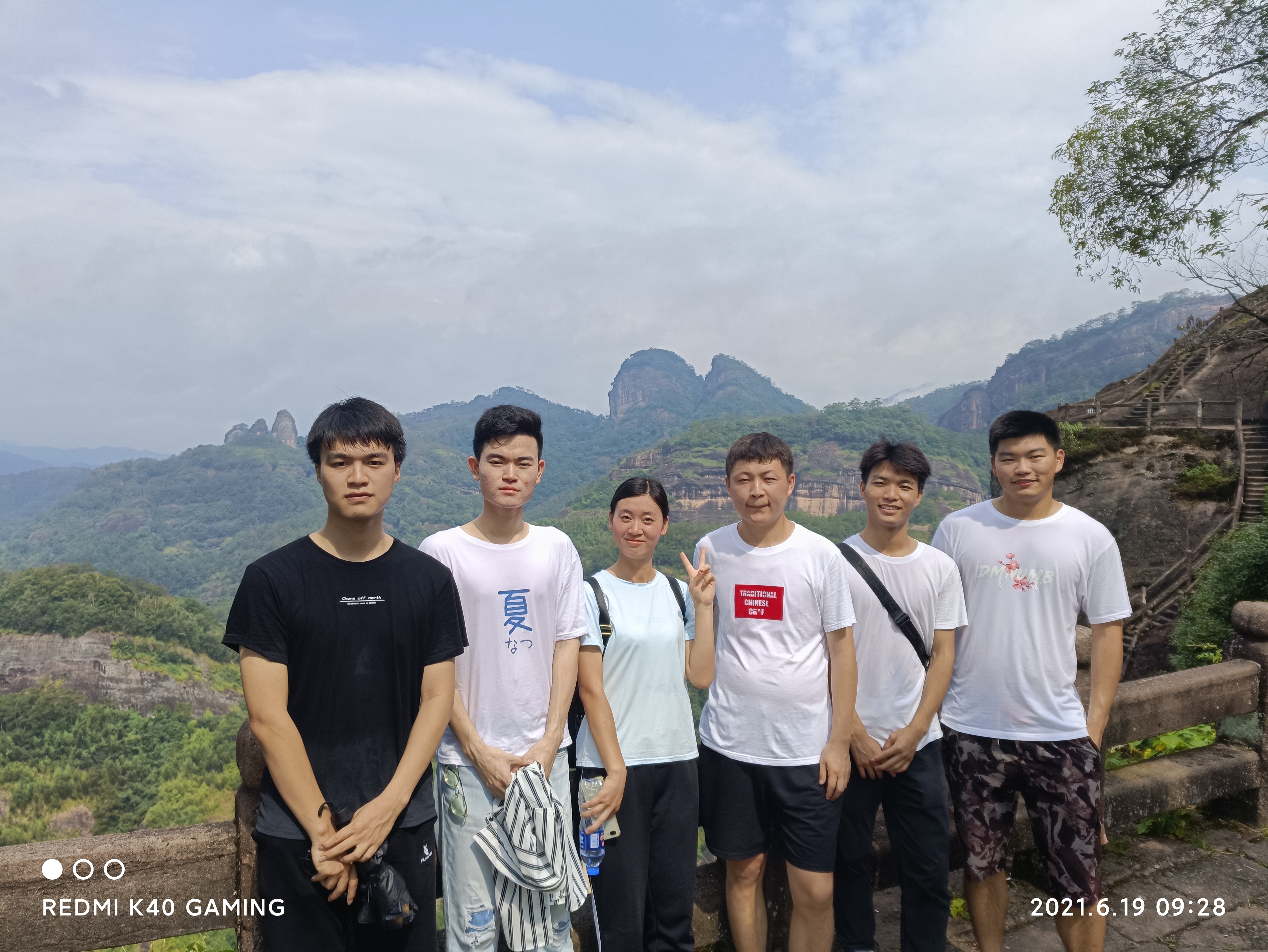 2021年6月19日,微纳光电子实验室集体出游武夷山,庆祝2021届研究生和博士生顺利毕业。研究室成员集体攀登天游峰,在欣赏云海仙境的同时,攀登也是一种对于身心的挑战。实验室的成员毅力顽强,勇攀陡峭山路,最终到达天游峰顶。研究室的老师同学们也得以放松身心,释放了科研和工作中的压力。